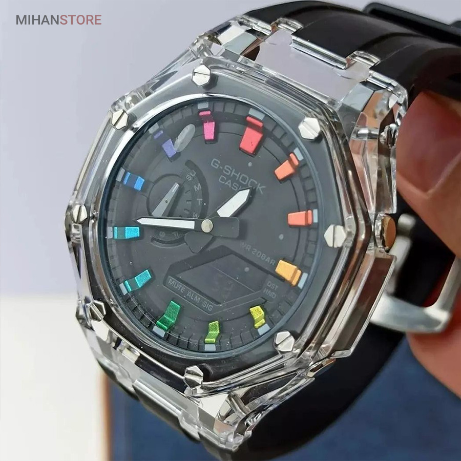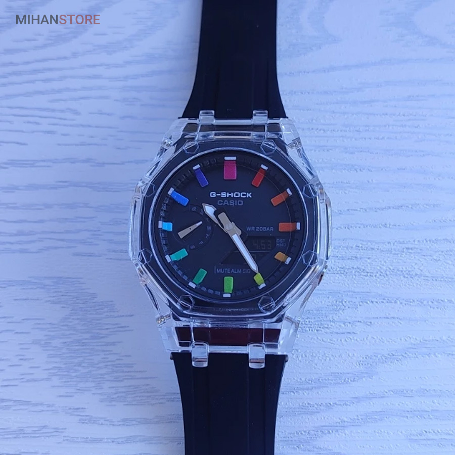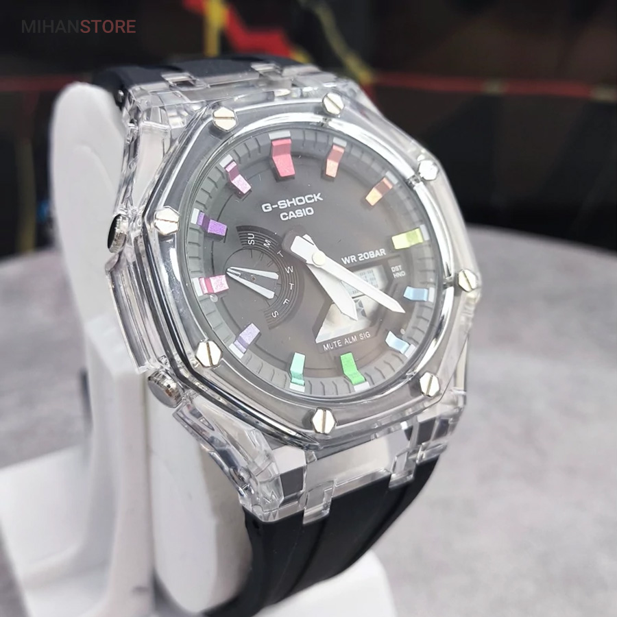 یکی از بهترین ساعت هایی که کمپانی کاسیو تولید میکند و از زمانی که ساعتهای کالکشن جی شاک به بازار معرفی شد ساعت جی شاک مدل GA2100 می باشد، کاسیو برای بار دیگر کاربران خود را به چالش کشید. مدل های جی شاک ، با ظاهر و طراحی مقاوم و منحصر به فرد خود، به محبوبیت بین المللی در بین جوانان رسید. ساعتهایی با قدرت ضربهپذیری بالا، مقاومت بالا در برابر آب و ضربات محکم که توانست نظر بسیاری از افراد را به خود جلب کند. ساعت مچی جی شاک دارای بند رابر مشکی خاص وموتور باکیفیت ژاپن وبدنه استیل وقاب شیشه ای جذاب است که بهترین انتخاب افراد خاص پسند می باشد.